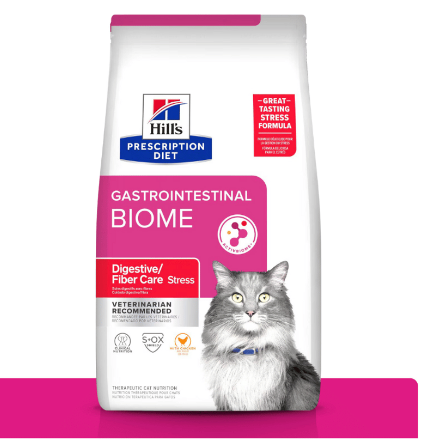 Hill’s Prescription Diet Gastrointestinal Biome es un alimento para gatos con alto contenido de fibra clínicamente demostrado que promueve heces regulares y saludables en tan solo 24 horas y ayuda a reducir el riesgo de recurrencia. Hecho con la tecnología de ingredientes ActivBiome+ para activar rápidamente el microbioma intestinal y ayudar a manejar problemas gastrointestinales complejos.