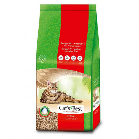 Cat's Best Original es una arena aglomerante muy absorbente, fabricada íntegramente de fibras vegetales sin adición de químicos, lo que la hace 100% biodegradable y compostable. La tecnología Alemana de Cat's Best permite un absorción de hasta 7 veces su peso.