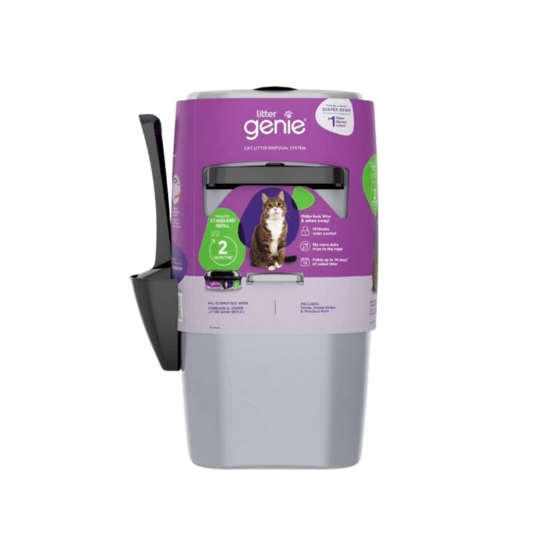 Litter Genie Cat Litter Disposal System es un novedoso basurero de diseño único pensado para recoger y limpiar la arena del arenero de tu gato. ¡Recógelo! ¡Arrójalo! ¡Séllalo! Con Litter Locker, la limpieza de la caja de arena de tu gato será más fácil que nunca. Litter Locker utiliza recarga cuadrada con tecnología Air-Seal que bloquea los olores y las bacterias. Dimensiones: Largo 24.30 x ancho 23.70 x alto 43.26 cm. Peso: 1,275 kg. Incluye pala y porta pala.