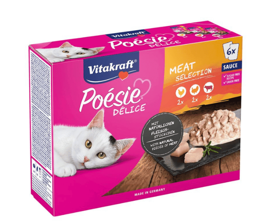Una experiencia gourmet para gatos exigentes. El Vitakraft Poésie Délice Multipack Carne ofrece una selección de deliciosas recetas con trozos de carne natural en fina salsa, diseñadas para satisfacer hasta los paladares más refinados. 6 unidades