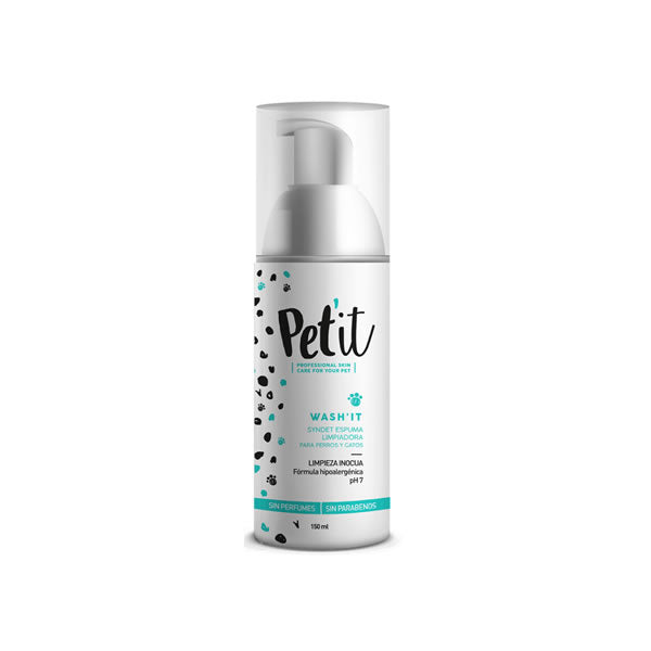 Pet’it Wash’it es la espuma limpiadora sustituta del jabón y shampoo que brinda limpieza profunda inocua, sin alterar los componentes esenciales de la piel. Es especial para aquellas pieles sensibles o en procesos inflamatorios.
