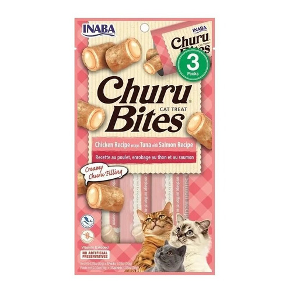 Hecho con salmón y atún salvaje 100% puro y natural criado en granjas Relleno cremoso de Churu® en el interior, pasta de salmón horneada suave en el exterior Sin granos, conservantes ni colorantes artificiales Contiene 3 unidades paquetes para máxima frescura 2 texturas diferentes en un bocado Ingredientes salmón, Atún, Agua, Tapioca, Clara de Huevo, Caseinato de Sodio, Goma Guar, Sabor Natural de Pollo, Sabores Naturales, Extracto de Levadura, Sabor Natural de Atún, Carragenina, Suplemento de Vitamina E, Pimentón Oleorresina (color), Extracto de té verde. Análisis garantizado Proteína bruta (mín.) 22,00% Grasa bruta (mín.) 3,00% Fibra bruta (máx.) 0,50% Humedad (máx.) 72,00% Vitamina E (mín.) 80 UI / kg Contenido de calorías: 1300 kcal / kg, 13 kcal / pcs ME (calculado)